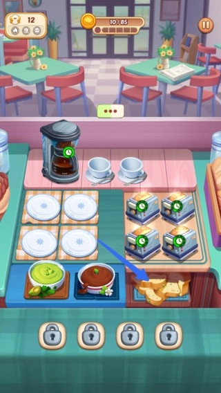 以下图中的关卡作为例子,玩家可以先烤制一些吐司,为后续可能出现的情况做准备。