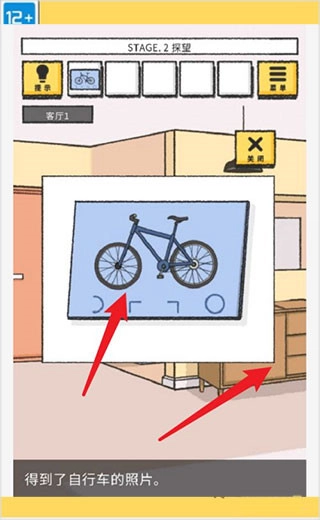 玩家进入后,能在桌面上找到照片,并且得到自行车的照片。