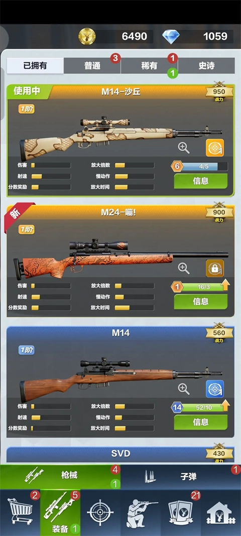 装备系统设有枪械与子弹两个界面,玩家可在此查看枪械和子弹的详细参数、获取途径,并且后续的保养维护与升级强化操作也都集中在此模块完成。