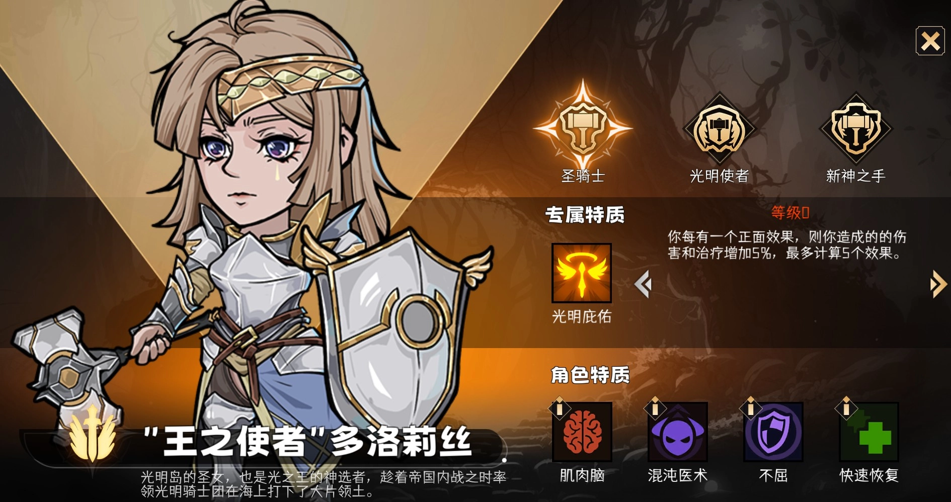 光明使者:真正的奶骑,永远的神!凭借治愈姿势的叠加操作,就能成为那种号称“只要一下没被打死就能奶回来”的强力存在。