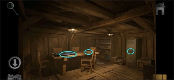 往里走进入办公室,观察桌上的蓝图,接着按照蓝图上的提示,打开木屋下方那只上了锁的盒子;完成这一步后,取出盒子里的「钥匙」与「挂锁」。