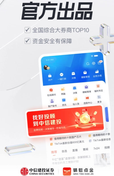 蜻蜓点金的前身为“中信建投证券”,是中信建投证券专为广大投资者精心打造的综合金融服务平台,涵盖炒股、投资、理财、基金、证券、财经资讯等服务,旨在为投资者提供极速、安全、优质且全面的金融服务体验。平台具备极速交易行情查看、丰富理财产品选择、独家精彩资讯获取、线上业务办理、金牌投顾互动、智能选股工具、大数据分析以及云端同步自选股等多项功能,一站式满足投资者的多样化需求。