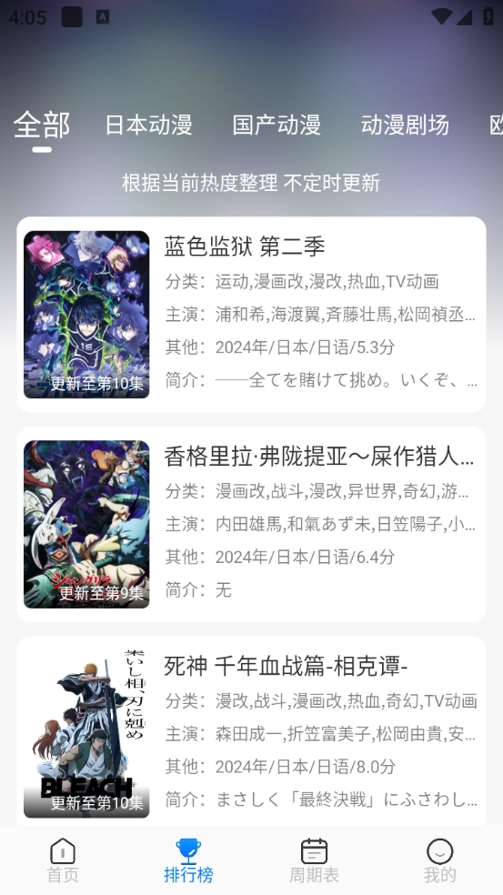 排行榜依据当前动漫的热度情况来排列顺序,用户能够清晰地知晓当下热门的动漫作品。