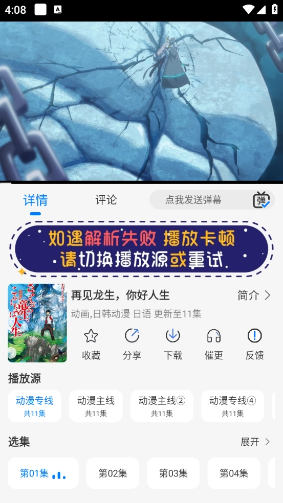 打开想看的动漫,支持选集、看弹幕、收藏、分享等。