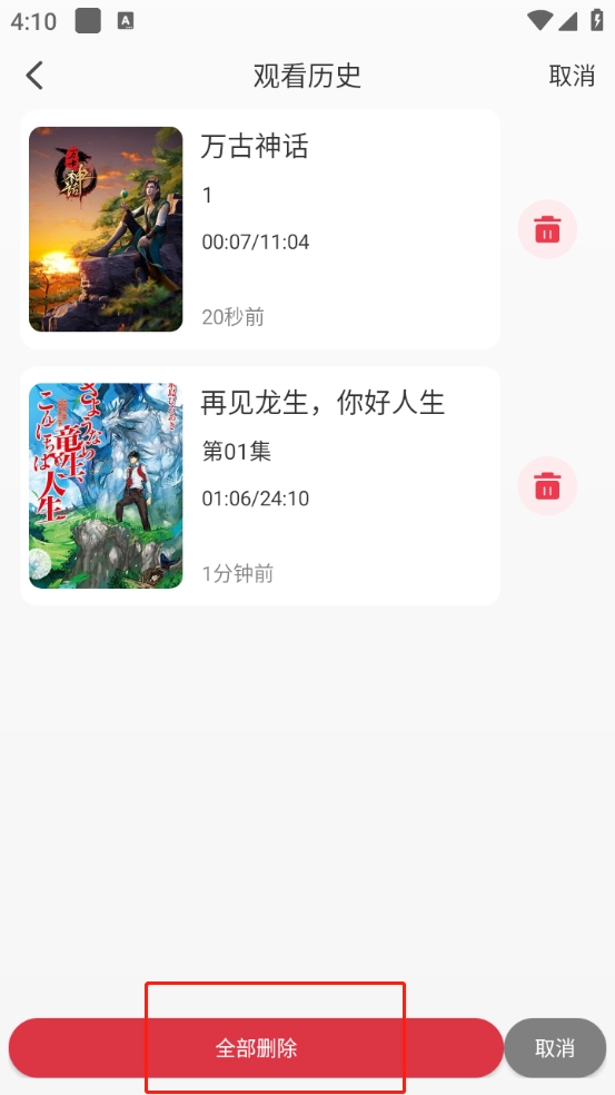 动漫国怎么删除观看历史