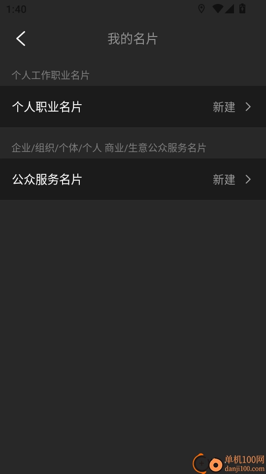 之后在“我的名片”菜单选项界面,点击“个人职业名片”右侧的“新建”按钮,即可进入下一步操作。