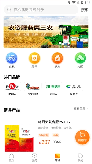 商城界面可以购买农机,种子,肥料,农药