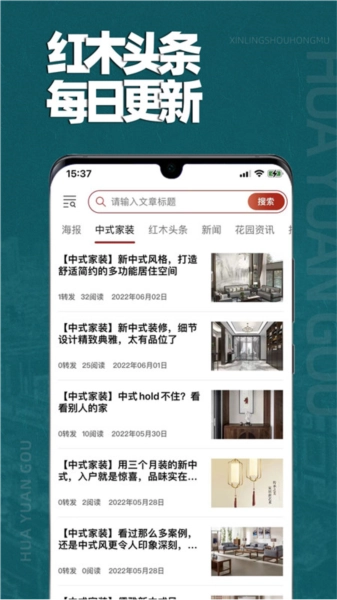 可以浏览每日新闻、红木知识、中式家装等资讯内容,帮助用户进一步了解红木相关知识与装修方面的信息。