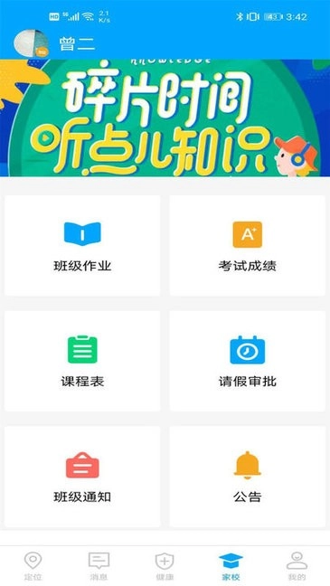 家校沟通服务: 能接收老师布置的作业和学校发布的通知,支持家长为学生一键向班主任提交请假申请并查看批示结果,还可留存所有沟通记录。这让家长与老师、学校之间的沟通交流更加便捷顺畅。