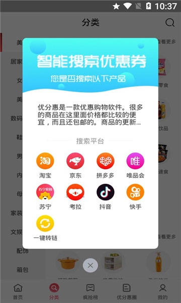 优分惠是一个不少人都在使用的省钱平台,它秉持“惠生活,惠分享”的理念,借助互联网与大数据技术的发展,为消费者构建起一站式“领券优惠,分享获利”的电商导购平台。