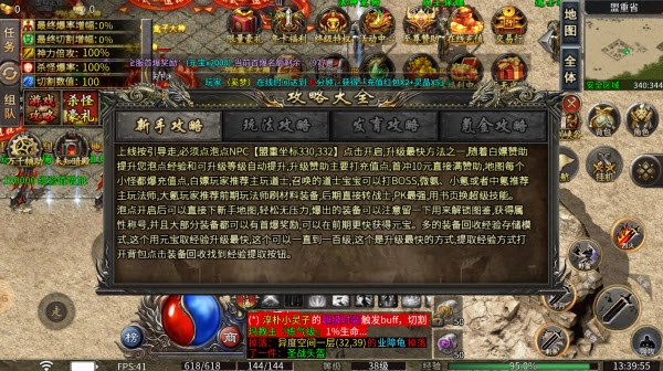 上线后按照引导流程操作,一定要找到泡点NPC【盟重坐标330,332】点击开启,这是升级最快的方法之一。随着白嫖赞助等级的提升,泡点经验和可升级的等级上限会自动提高,升级赞助主要依靠打充值点,首充10元就能直接拉满赞助。地图里的每个小怪都会掉落充值点,白嫖玩家建议主玩道士,召唤的道士宝宝能用来打BOSS;微氪、小氪或者中氪玩家推荐主玩法师;大氪玩家前期可以玩法师刷材料和装备,后期直接转玩战士,战士是PK最强的职业,还可以用书页兑换超级技能。