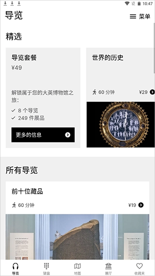 你可以通过大英博物馆导览App,聆听馆内250件精品馆藏的音频赏析。依托最新研究成果,它能帮你以全新视角解读展品。除了丰富的音频资源,App还为不少展品配备了背景图、策展人视频解说等多媒体信息内容。