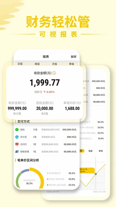 数据报表分析:配备详尽的交易数据报表与分析工具,助力商家掌握经营动态,提升管理决策的科学性与精准度。