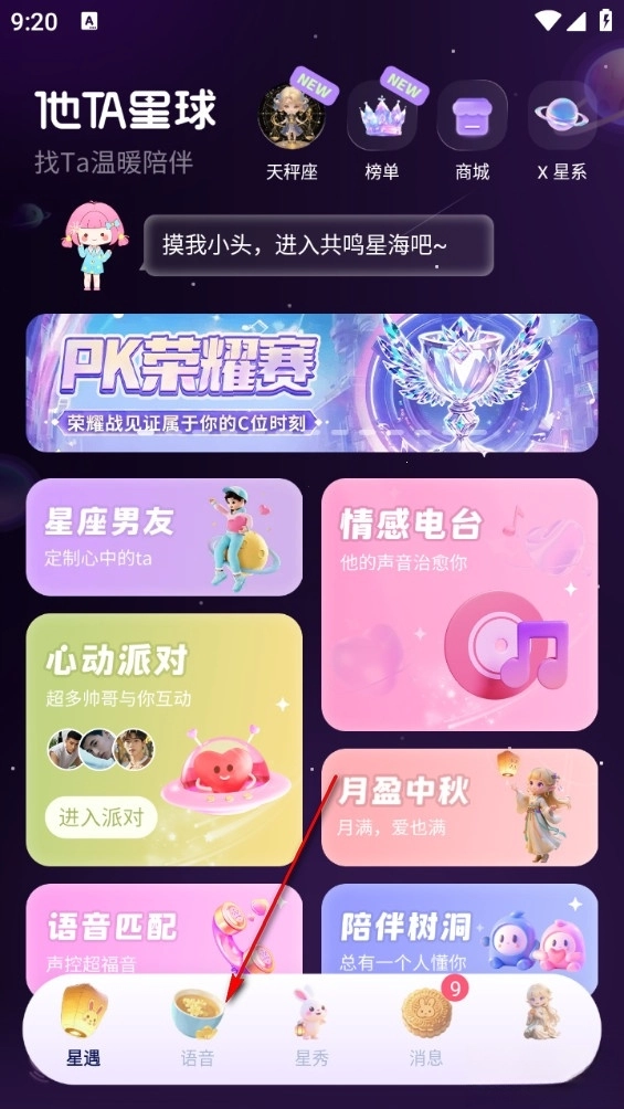 汇聚不同风格的男性用户,“温柔治愈嗓”“霸道苏音”等多种声线标签清晰,通过语音连麦“先声夺人”,快速匹配契合的聊天对象