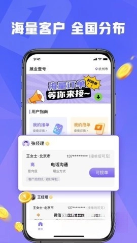 提供在线展业服务,用户可随时轻松抢单获客。