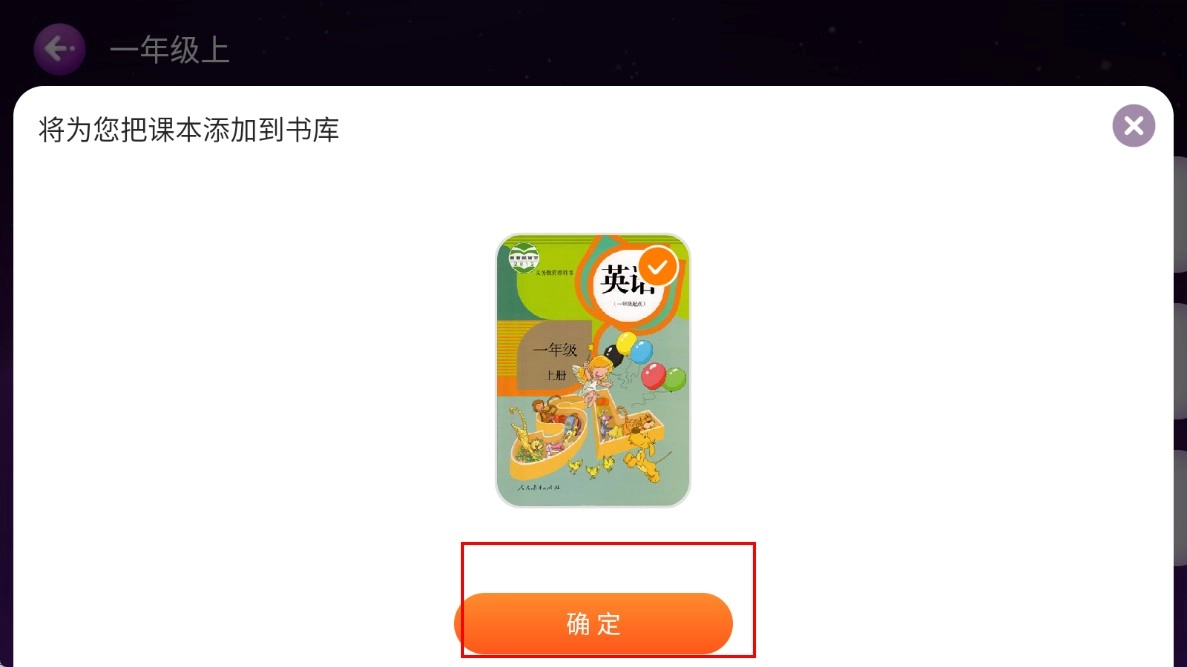 在添加课本的弹窗里,点击【确定】功能按钮,就能把课本添加至书库。