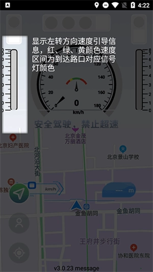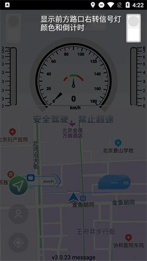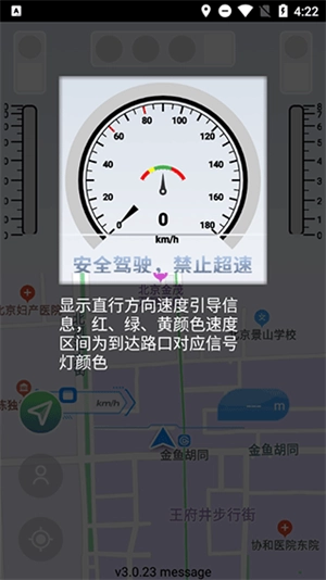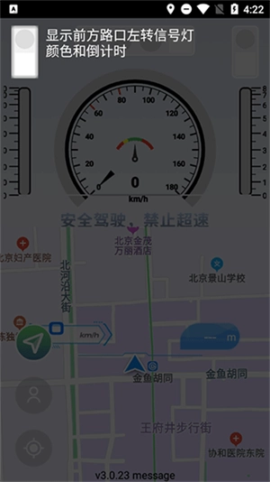这里显示的是左转方向的速度引导信息,红、绿、黄三种颜色的速度区间,分别对应车辆到达路口时信号灯的颜色。