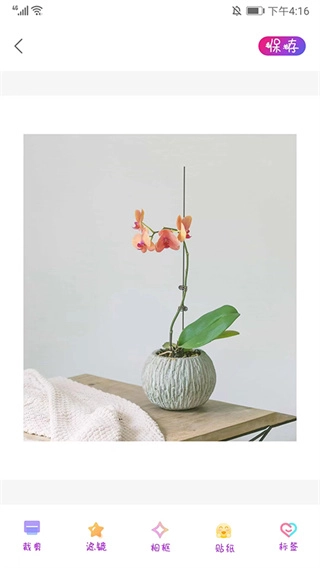最后我们可以挑选一些常用标签或者自定义标签,用来描述照片对应的心情,选好后点击右上角的【保存】按钮,照片就会存入手机相册里了。以上就是Promovie专业摄像机的使用方法。