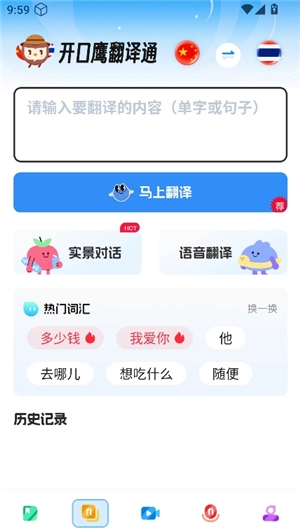 打开翻译通的界面后,在输入框中填入中文内容,只需点击一下翻译按钮,就能快速将其转换为泰语。