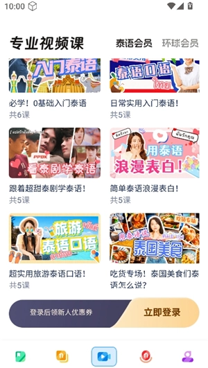 还能观看专业的泰语视频课程,许多帅哥美女带你学习泰语