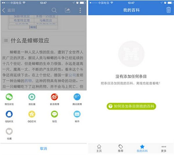 另外,MBA智库百科还为用户贴心设计了分享与收藏按钮。用户只需在想要分享或收藏的名词解释页面,点击右上角的“点点点”按钮,就会弹出分享与收藏的界面。这样一来,既能简单方便地把自己了解的名词分享给朋友或有需要的同事,也可以将其收藏到“我的百科”中,以便日后使用和学习。