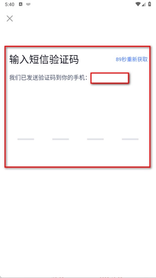 输入收到的短信验证码,完成账号登录操作。