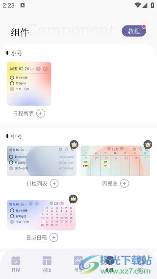 进入“组件”板块后,你会发现这里有小号、中号、大号等多种不同规格的小组件可供选择。