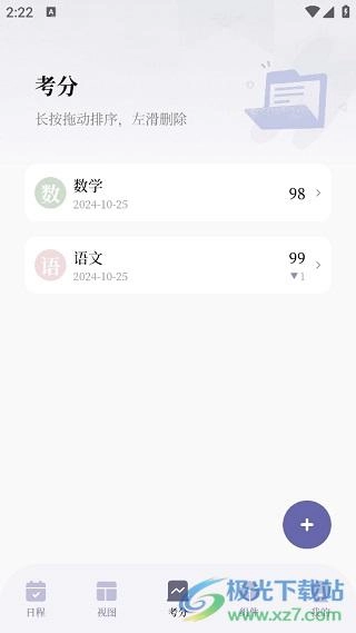 进入“考分”界面后,即可在此处对语文和数学科目进行分数统计。