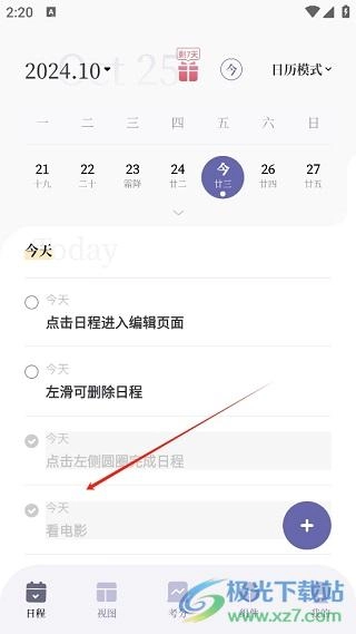 要是完成了这个日程,你可以点击左边的圆圈,这样就表示已经完成了。