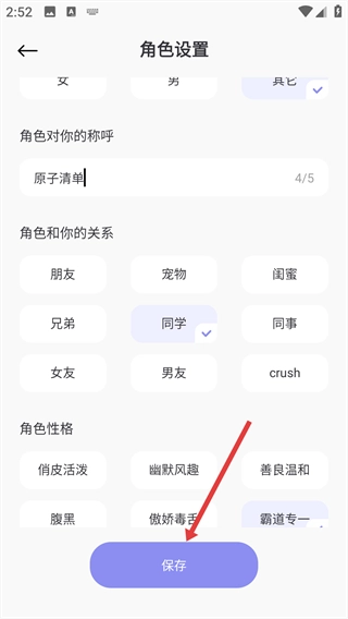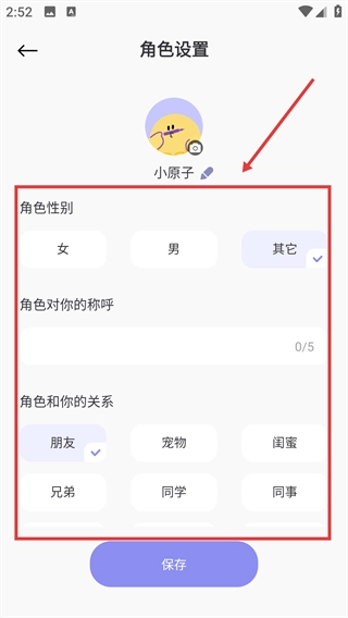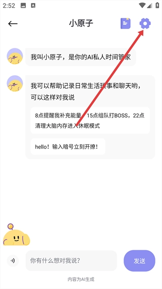 在小原子的聊天界面,点击右上角的设置图标,就能进入角色设置页面啦。