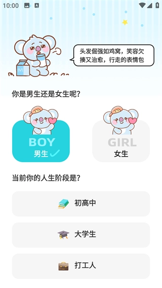 首次使用时需选择个人信息,涵盖性别、人生阶段等内容。