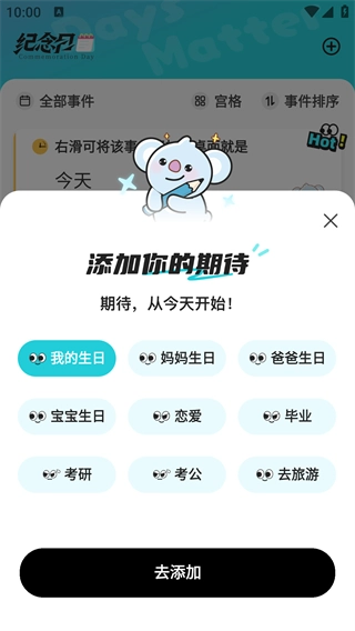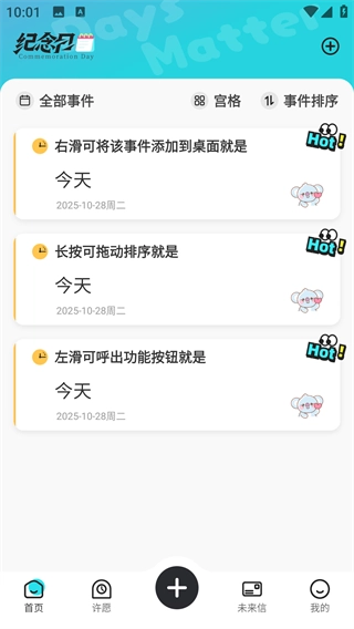 之后来到首页,可以添加你的期待时刻;