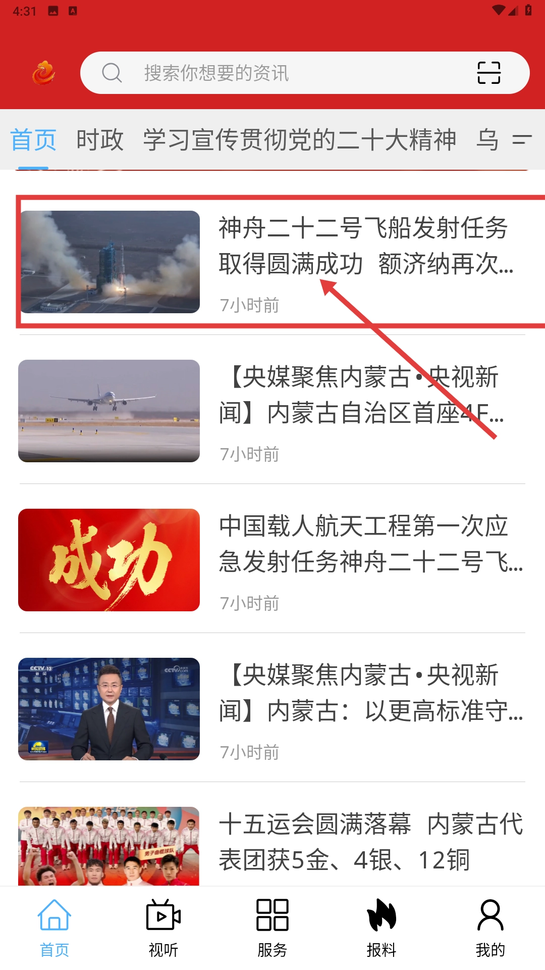在首页点击资讯标题,查看对应新闻的详细内容。