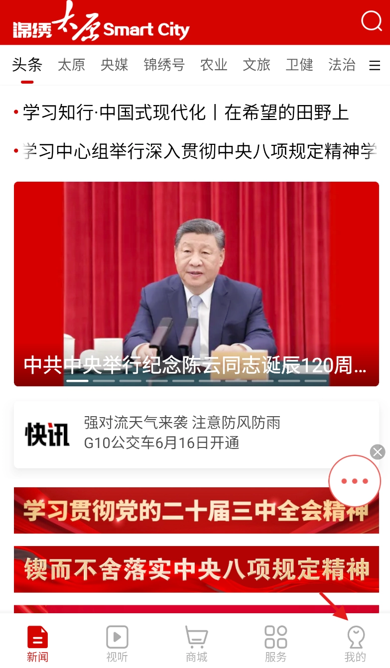打开锦绣太原应用后,在底部的导航栏里找到“我的”选项并点击,就能进入个人界面了。