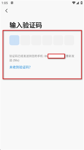 在验证码输入页面,填写收到的验证码,完成注册流程。