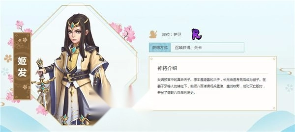 虎父无犬子,身为R级神将姬昌之子的姬发同样实力强劲。在原著里,姬发是天数注定的新朝君主,这个光环最关键的效果便是让他拥有不死之身!只要他加入战斗,友方所有神将的生命值都会大幅提升。每次释放技能时,他都会为自身附加【屏障】状态,能免疫接下来两次受到的伤害!觉醒后的姬发,就连普通攻击都能为自己回复生命值,绝对算得上封神世界中最难被击败的神将之一。