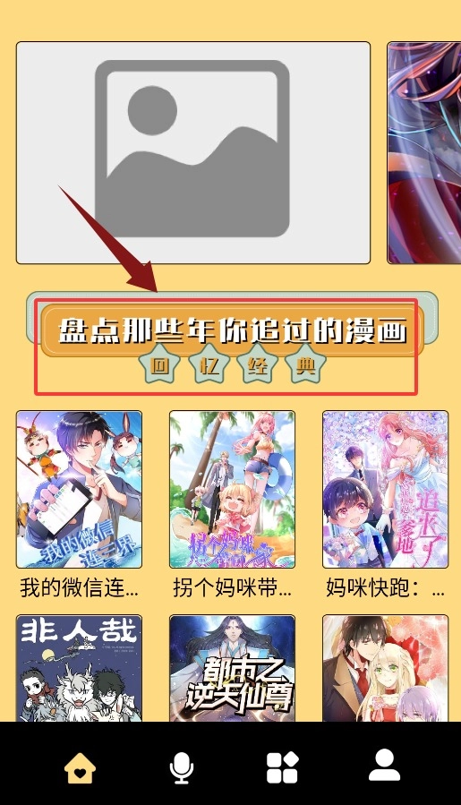 首页设置了“盘点那些年追过的漫画”之类的专题内容推送。