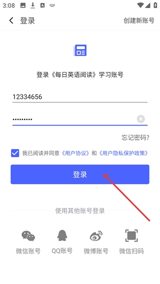先把账号信息和密码填写完整,接着勾选相关协议选项,最后点击【登录】按钮,这样就能完成账号登录的操作了。
