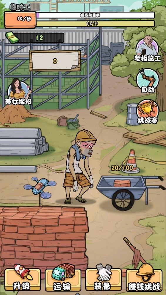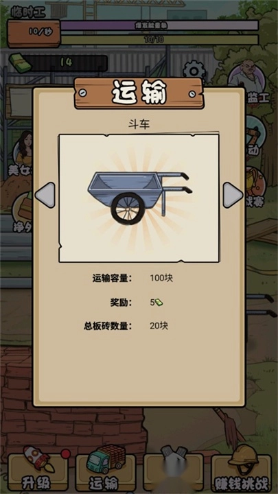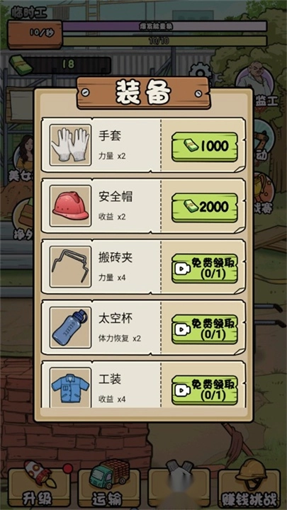 游戏中设有可提升的多项属性,玩家能够通过强化力量、体力等属性来提高搬砖的速度。