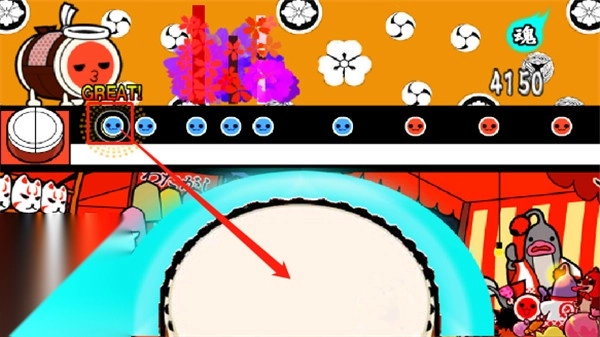 游戏内碰到红色鼓点,玩家需要点击敲击鼓面