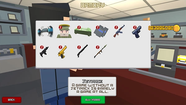 点击右侧的宝箱,就能开启军械库,查看各类装备,购买后就能在游戏中使用。