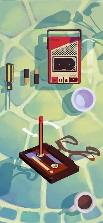 进入游戏后,玩家首先要长按磁带,接着把它拖到录音盒里。