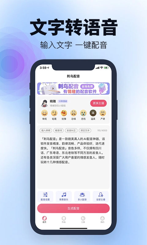 刺鸟配音免费版具备文字转语音的功能,能依据输入的内容一键完成文本到配音的转换。