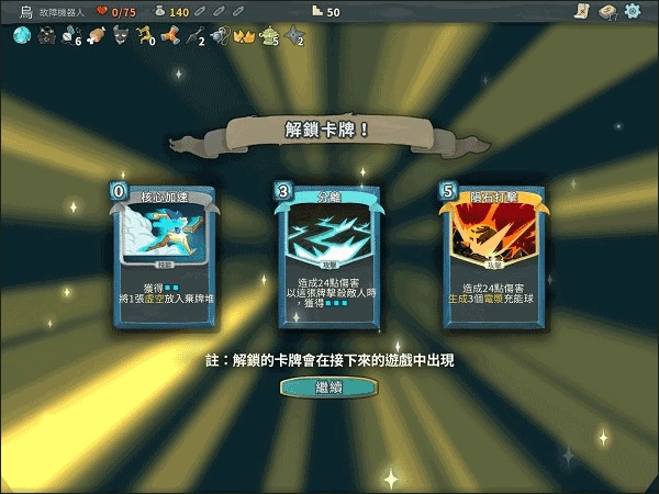 解决掉所有怪物后,就能得到金币,还能从三张卡片里挑选一张。