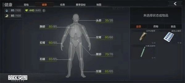 在暗区突围中,药品和身体构造分别有哪些?