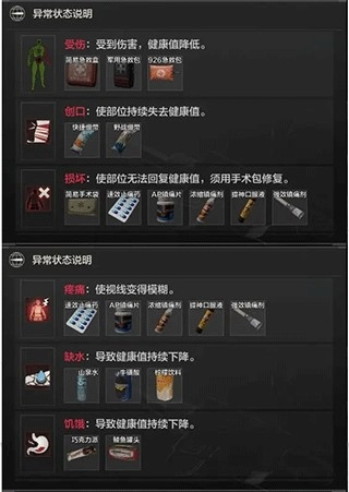 当肢体出现损坏情况时,可先用手术包对损坏部位进行治疗,之后再使用急救包来恢复健康值。
