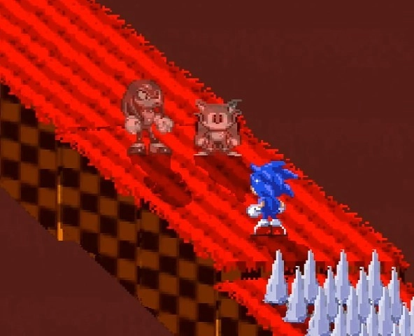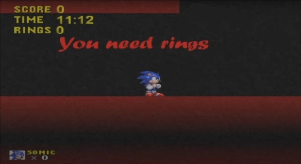 索尼克的思维是可以被操控的。在关卡里,他会看到一处红色文字区域,上面标注着“你需要戒指”。要是你尝试跨过那个位置,他就会移动得十分缓慢,没过多久便会被(经典版)Exetior抓住。索尼克拥有能震耳欲聋的Exetior相关特性,他的朋友们都还活着,不过他们必须将他解决掉。