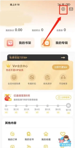 进入我的界面后,点击页面右上角的【设置图标】按钮。