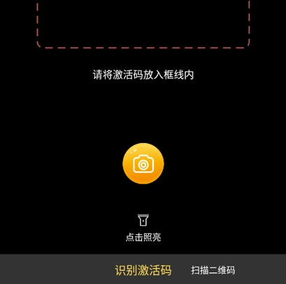 进入激活界面后,把激活码对准框线内扫描,成功后就能完成激活了。