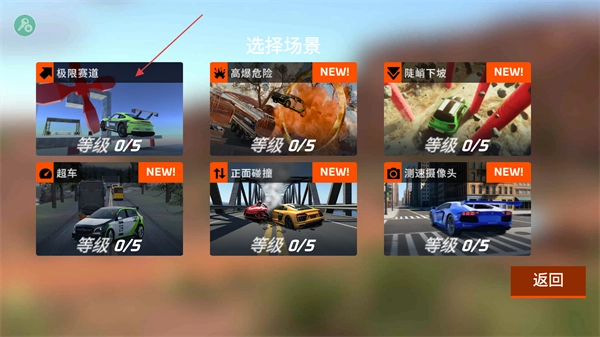 在场景选择界面,点击已解锁的场景模块,即可进入对应关卡的驾驶场景,为开启该赛道的驾驶挑战做好准备。